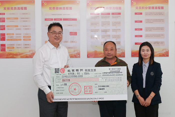 9月29日,北京化工集团党委书记、董事长陈宇,党委副书记吴瑞峰,党委常委、副总经理韩宝海一行专程来到对口帮扶的密云区东邵渠镇银冶岭村开展调研,慰问驻村第一书记,并向银冶岭村捐款。