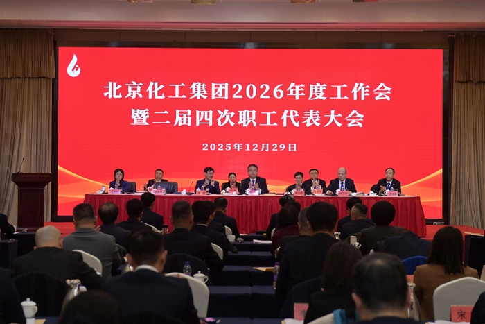 12月29日,北京化工集团召开2026年度工作会暨二届四次职工代表大会,党委书记、董事长陈宇以《坚持“231”战略布局和“三个北化”建设不动摇 奋力书写集团公司“十五五”时期高质量发展的崭新篇章》为题作总结讲话,党委副书记、董事、总经理杨旭辉以《砥砺收官“十四五” 擘画启航“十五五”——为打造国内领先国际知名的创新型企业集团而奋斗》为题作工作报告,党委常委、副总经理韩宝海主持会议。