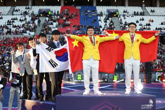 中秋月圆之时,从法国里昂传来喜讯。在刚刚结束的第47届世界技能大赛上,中国代表团共夺得36枚金牌,9枚银牌、4枚铜牌和8个优胜奖,位居金牌榜、奖牌榜和团体总分首位。技师学院承接的4个世赛项目全部获奖!其中,技师学院教师潘朝阳、罗自立出战机电一体化项目斩获金牌,这是技师学院自己培养的选手首次在世界技能大赛上实现金牌零的突破。